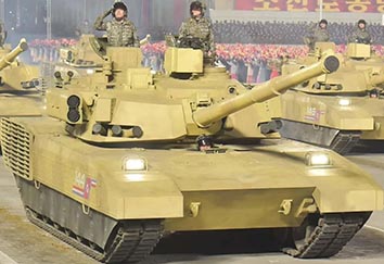 長年敵対関係にある韓国が、1980年代半ばに初の国産MBT(主力戦車)であるK1戦車を実戦化したことに強い危機感を覚えた北朝鮮は、当時「68式戦車」(ソ連製のT-55中戦車のライセンス生産型)に代わって、同国陸軍の主力MBTとなりつつあった「天馬号」(チョンマホ、ソ連製のT-62中戦車のライセンス生産型)に、様々な近代化改修を施して機甲戦力の強化を図ると共に、K1戦車に対抗できる新型MBTの開発に着手した。 しかし、当時の北朝鮮は一からMBTを新規開発するには技術も経験も不足していたため、天馬号シリーズと同じく、T-62中戦車をベースにこれに改良を加えることで新型MBTを開発することにした。 北朝鮮にとって幸いだったのは1980年代半ばに、イラン・イラク戦争で鹵獲されたソ連製のT-72戦車をイラン経由で入手していたことで、新型MBTを開発する際に、T-72戦車をリバースエンジニアリングして得られた技術を適用することができた。 しかしやはり、北朝鮮の技術力でいきなりT-72戦車レベルの新型MBTを実用化するのは困難で、長期に渡る研究と試作を重ねることで、徐々に技術的ノウハウを蓄積しなければならなかった。 北朝鮮陸軍のMBTで初めて、T-72戦車の技術が目に見える形で適用されたものが、2002年に西側に存在が確認され、アメリカ国防省が「M2002」の識別番号を付与した「暴風号」(ポップンホ)である。 暴風号は、転輪数が68式戦車や天馬号の片側5個から、T-72戦車と同じ片側6個に増えており、転輪サイズもT-72戦車と同様の一回り小さいサイズに変更されている。 暴風号は転輪数の増加に伴って車体もやや延長されているが、主砲に関しては天馬号シリーズと同じ55口径115mm滑腔砲U-5TSのままである。 そして暴風号の車体設計をベースに、2009年から量産に入った新型MBTが「先軍号」(ソングンホ)である。 当初「先軍915」と呼ばれていた先軍号は、暴風号と同じくやや延長された車体に片側6個の転輪を備えているが、主砲に関してもT-72戦車に搭載されているものと同じ、旧ソ連製の51口径125mm滑腔砲を装備しており、従来の北朝鮮陸軍MBTに比べて格段に攻撃力が向上している。 また先軍号は、防御力や機動力も従来の同軍MBTに比べて大幅に強化されており、実力的にはT-72戦車に近いレベルに達していると推測されている。 この先軍号に至って、ようやく北朝鮮は韓国のK1戦車に対抗可能なMBTを手に入れたわけだが、すでに韓国はK1戦車の改良型であるK1A1戦車や、後継として開発されたK2「黒豹」(フクピョ)戦車を実戦化していた。 K1A1戦車やK2戦車は、ドイツのラインメタル社製の強力な120mm滑腔砲を装備しており、K2戦車の装備する55口径120mm滑腔砲Rh120-L55に至っては、APFSDS(装弾筒付翼安定徹甲弾)を用いて射距離2,000mで、810mm厚のRHA(均質圧延装甲板)を貫徹することが可能であった。 このため、北朝鮮はより装甲防御力に優れる新型MBTを開発する必要に迫られ、先軍号を実戦化してから約10年の歳月を掛けて完成させたのが、この「天馬2号」である。 2020年10月10日の朝鮮労働党創建75周年軍事パレードで初めて西側に存在が確認され、アメリカ国防省が「M2020」の識別番号を付与した天馬2号は、北朝鮮陸軍のMBTとしては異例の黄色いカラーリングで、9両が車列を組んでパレードに登場した。 なお本車は、2020年10月に初登場してから長らく正式呼称が不明のままであり、アメリカ国防省が付けた「M2020」という呼称が一般的に広まっているが、2024年5月29日になってようやく、正式呼称が「天馬2号」らしいということが判明した。 天馬2号で非常に特徴的なのが、旧ソ連製MBTの基本設計を踏襲した従来の北朝鮮陸軍MBTと異なり、砲塔のデザインが西側MBT、特にアメリカ陸軍のM1エイブラムズ戦車にそっくりな点である。 一方、車体デザインはロシア陸軍の最新MBTであるT-14戦車によく似ており、転輪数もT-14戦車と同じく片側7個に増えている。 また砲塔前面左右と側面の下部に、APS(アクティブ防御システム)の擲弾発射機を装備している点も、T-14戦車と同様である。 天馬2号は2022年4月25日の朝鮮人民軍創建90周年軍事パレードや、2023年7月27日の朝鮮戦争休戦70周年戦勝記念日軍事パレードにも参加した他、2023年9月にはAPSで実際に、RPG対戦車無反動砲の弾頭を迎撃している映像が公開された。 2024年3月13日には、金正恩総書記が戦車部隊の大規模演習に出席し、自ら天馬2号を操縦する様子が報道された。 |
