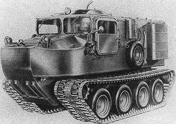車体形状も一般の装軌式車両とはかなり異なっていたが、さらに特徴的なのが足周りで、転輪には乗り心地を改善し、騒音を減少するため空気入りのタイヤが取り付けられており、履帯も雪上車のような724mmという幅広のバンド式が使用されていた。