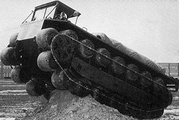 片側16個のテラタイヤが装着された履帯を使用した試作車は重量17,500〜19,100ポンドで、185hp/2,800rpmの出力を発揮するエンジンを搭載していた。